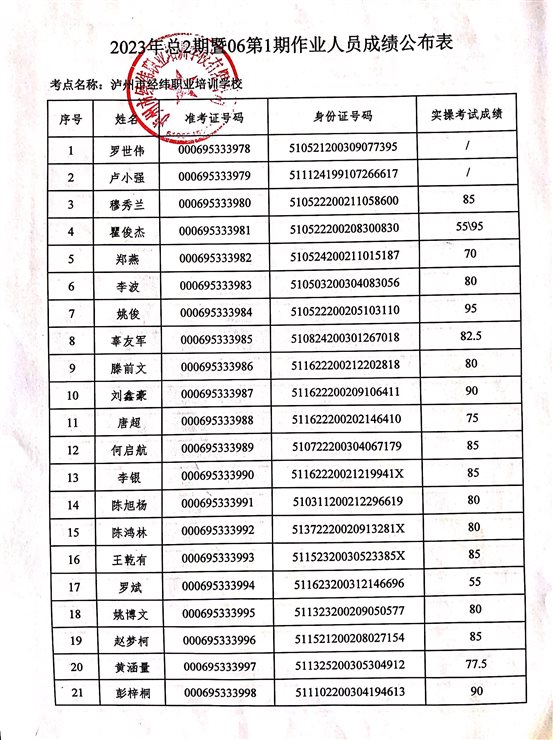 2023年總2期暨06第1期作業(yè)人員成績公布表