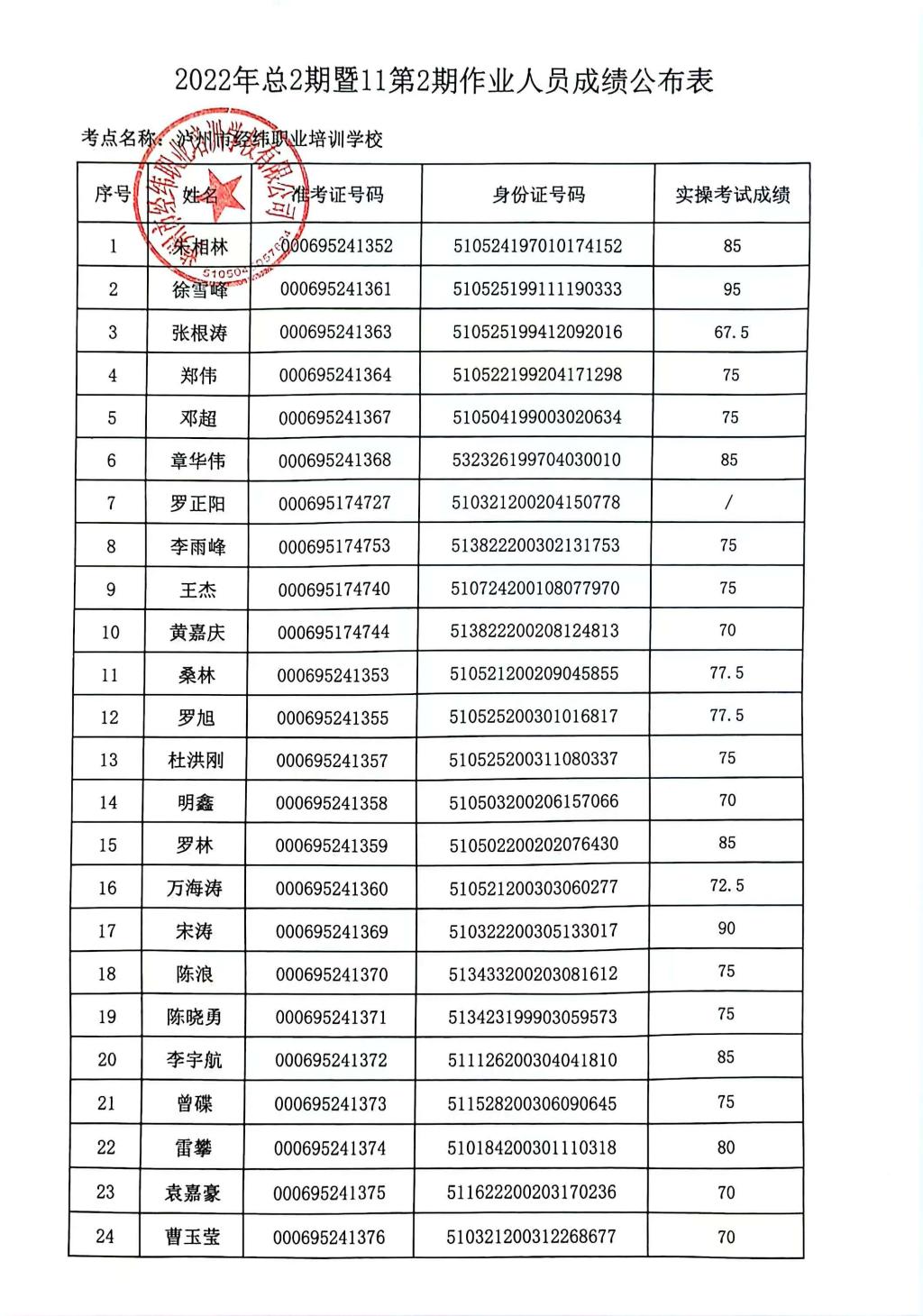2022年總第2期暨11第2期特種設(shè)備作業(yè)人員(T)證實(shí)操成績(jī)公示