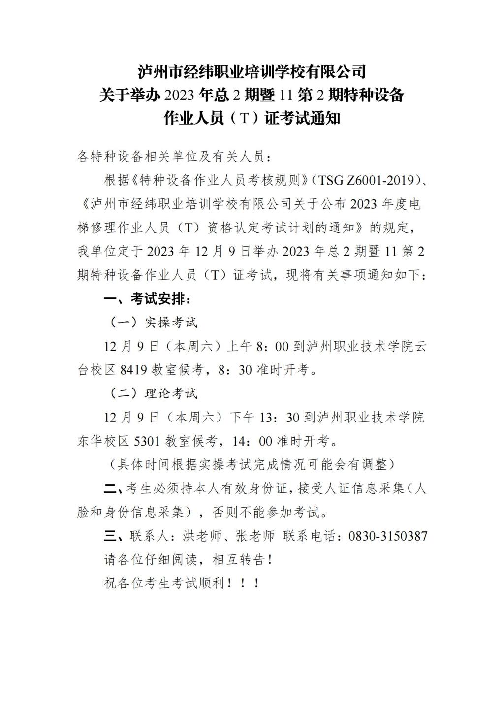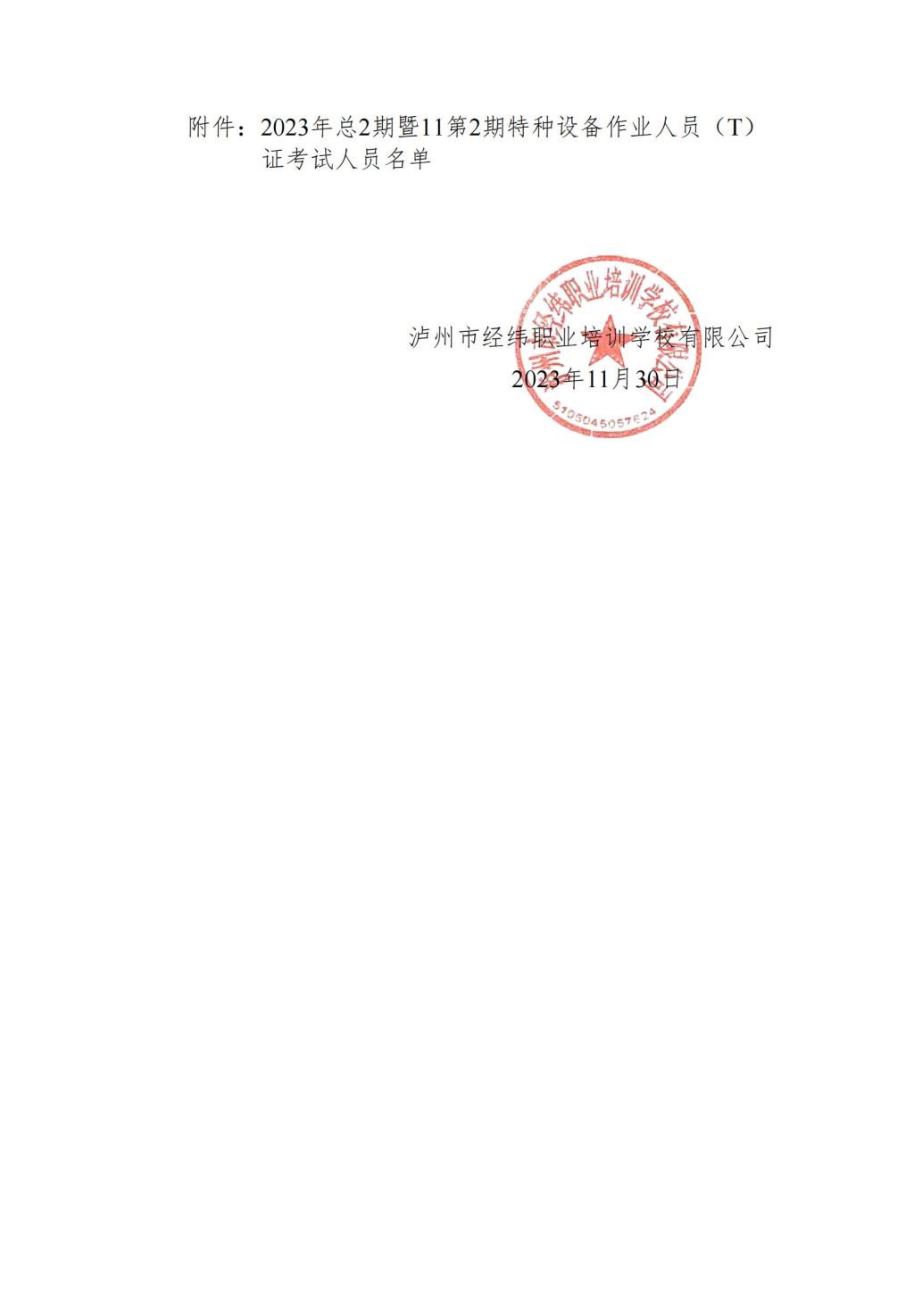 瀘州市經(jīng)緯職業(yè)培訓(xùn)學(xué)校有限公司關(guān)于舉辦2023年總2期暨11第2期特種設(shè)備作業(yè)人員(T)證考試通知