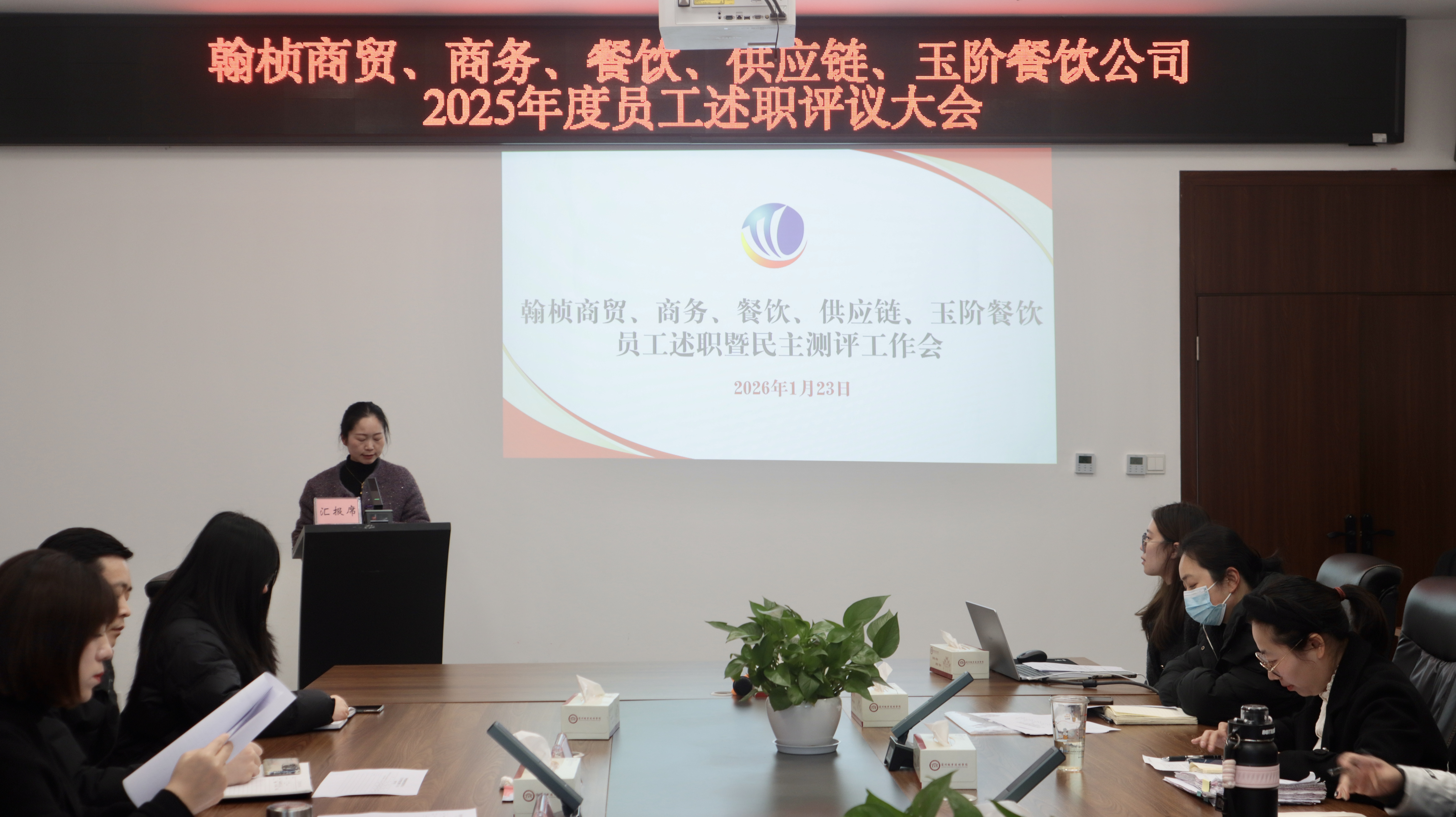 為系統(tǒng)回顧2025年度工作成果,科學(xué)評價(jià)員工履職效能,1月23日下午,翰楨商貿(mào)、商務(wù)、餐飲、供應(yīng)鏈、玉階餐飲公司聯(lián)合召開2025年員工述職暨民主測評工作會。