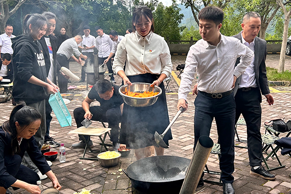 鑒往知來,當(dāng)思一粥一飯,來之不易!中午時分,學(xué)員們架柴生火、埋鍋造飯,做紅軍餐、吃紅軍飯,憶苦思甜,進(jìn)一步體味在艱苦條件下的革命精神和樂觀主義精神,提升艱苦樸素的意識。