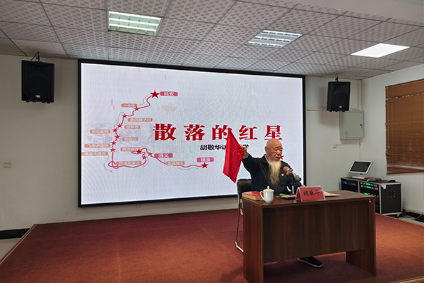 78歲高齡的中國好人、四川省非遺赤水河船工號子傳承人胡敬華老先生用擲地有聲、鏗鏘有力的語言,向?qū)W員們分享父輩投身革命、忠于革命的英勇事跡。