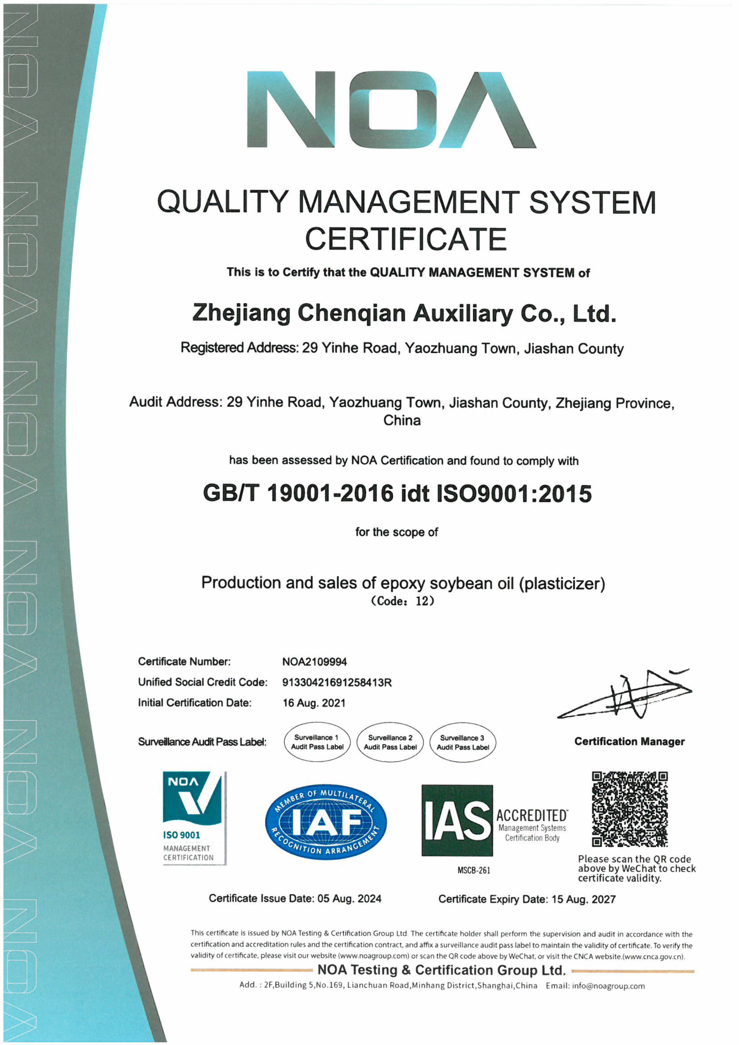 1998年,產品榮獲全國“星火杯”優(yōu)秀產品金獎。2003年獲得貝爾國際驗證機構頒發(fā)的ISO9001:2000質量體系換版證書。環(huán)氧大豆油是聚氯乙烯(PVC)的優(yōu)良增塑劑和穩(wěn)定劑,用于血液容器、輸血容器、輸流容器以及人工心肺、腎臟的血液回路制作和用聚氯乙烯制成的醫(yī)病用具中。
